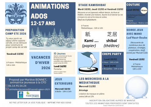 Vous êtes ici : Accueil > Animations ado février 2026